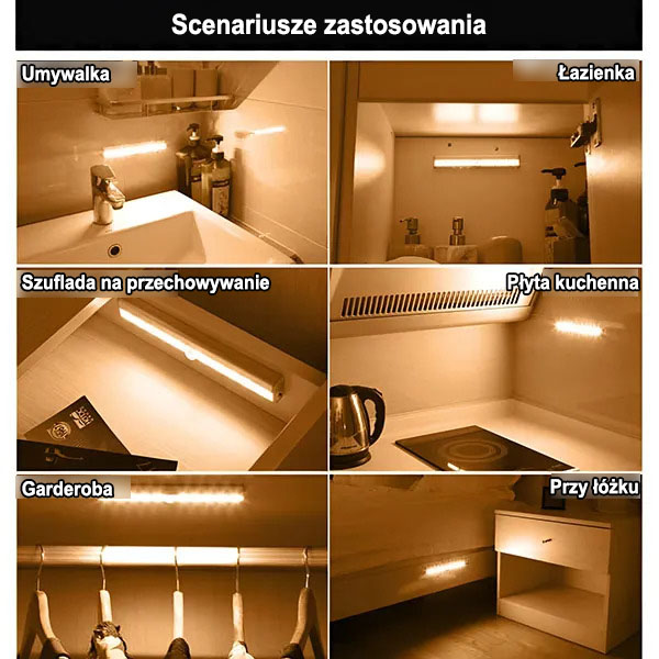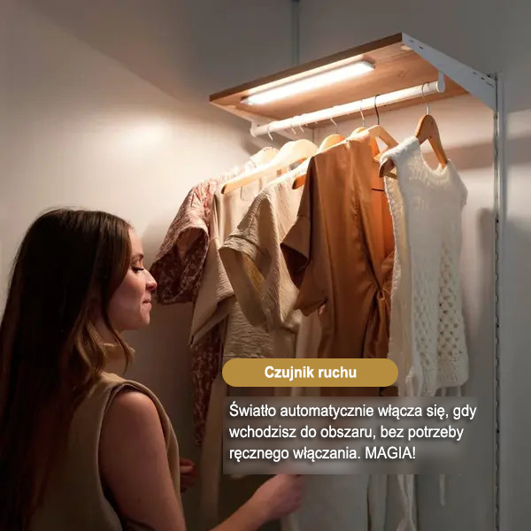 Ułatw sobie ubieranie się, umieszczając to światło w szafie lub garderobie. Zapala się automatycznie po otwarciu drzwi, pomagając znaleźć ubrania bez konieczności szukania ich po omacku.
